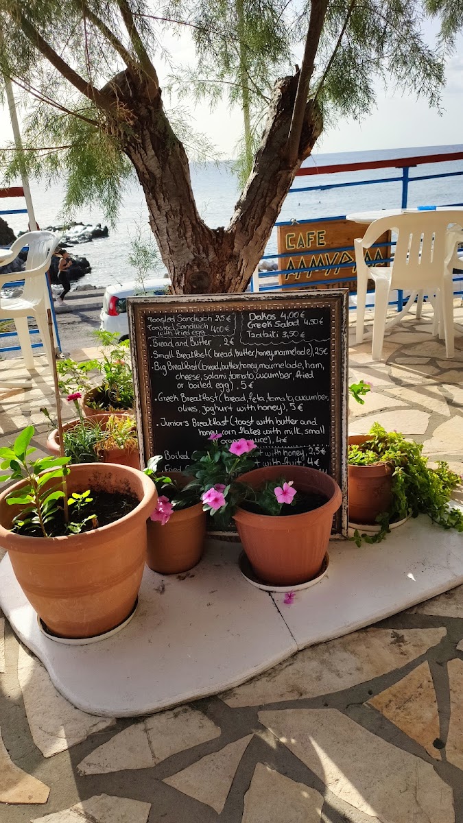 Guests rave about the stunning sea views that enhance the dining experience, as well as the cozy atmosphere created by the friendly couple who own the establishment. Whether you're stopping by for a quick bite or lingering over delicious small plates like ntakos and refreshing desserts such as the exquisite mosaic cake, Cafe Almyrida promises comfort and quality.